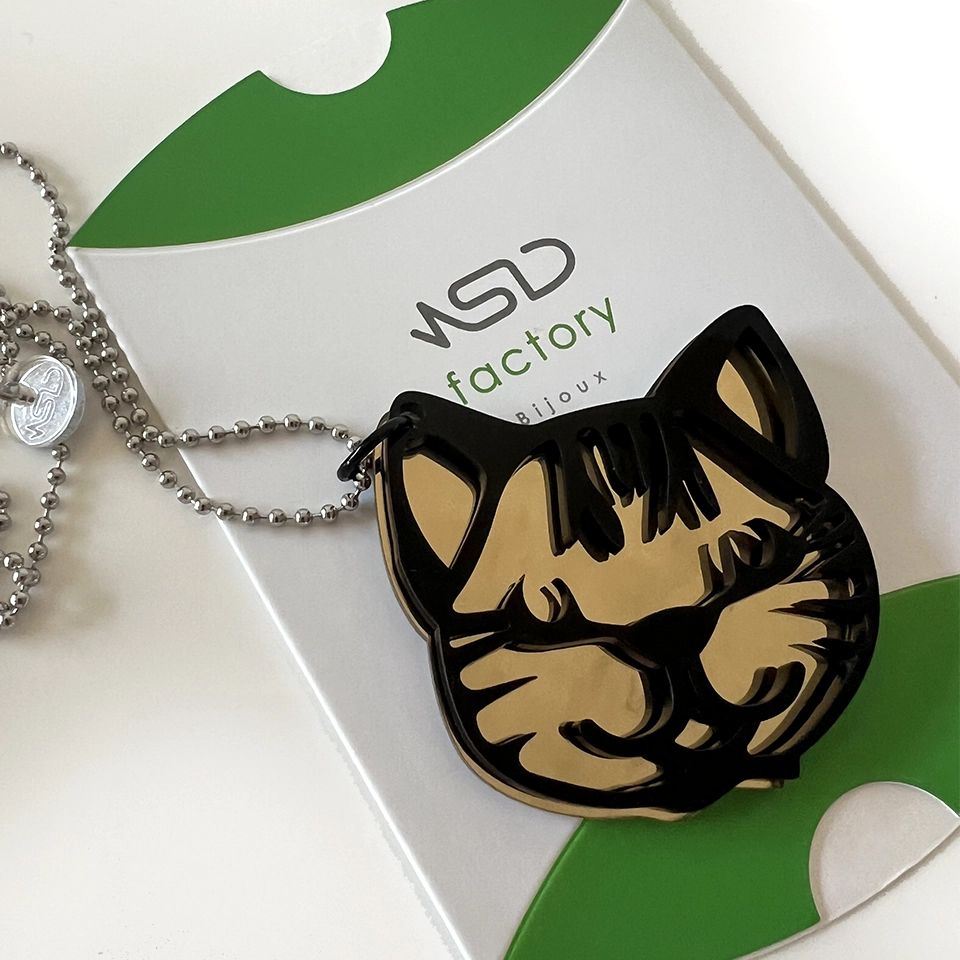 Collana in plexiglass ispirata ai gatti.